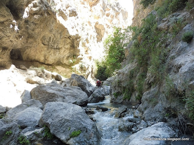 El cauce se va estrechando, la progresión se hace entre piedras por donde podamos.